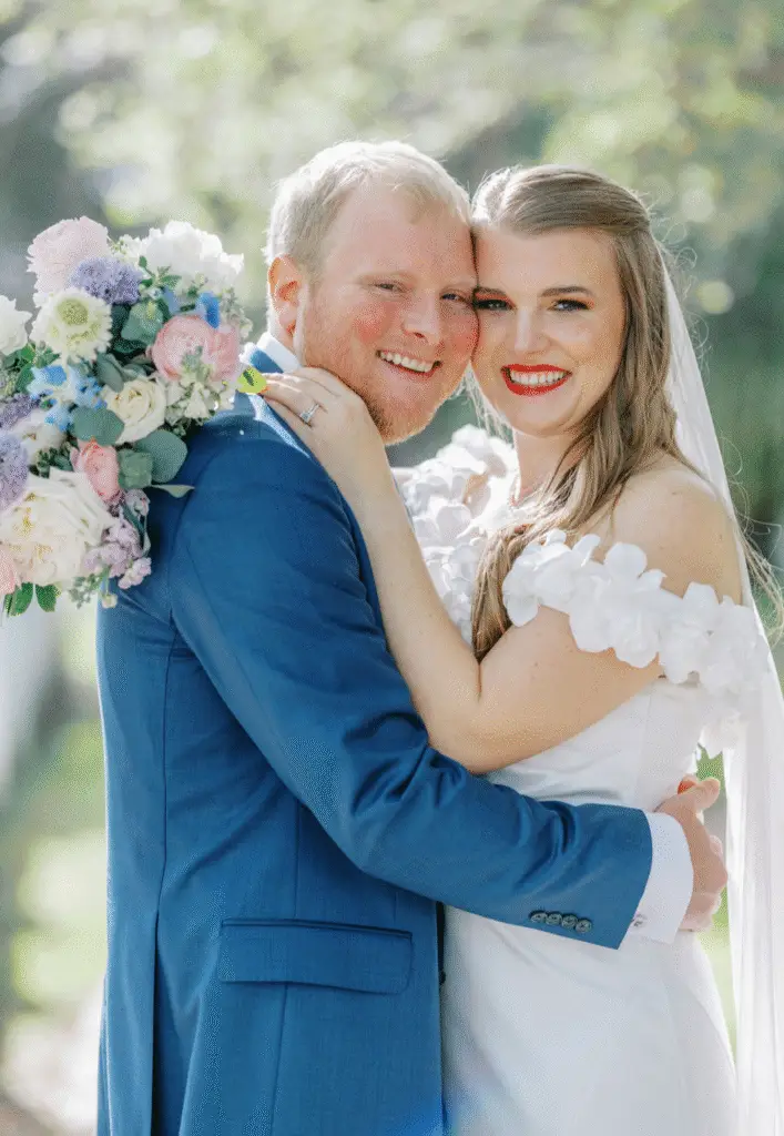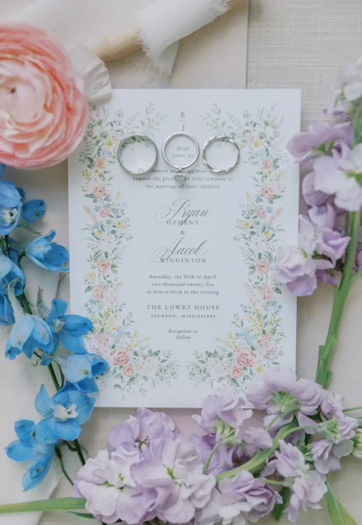 Their celebration unfolded at The Lowry House, an historic property in Huntsville that provided the perfect canvas for a small but spectacular wedding. The ceremony was intimate and heartfelt, framed by a beautifully designed arch and linens that enhanced the property’s natural charm. With the quiet hum of spring all around, Ryan and Jacob exchanged vows in front of the people who mattered most, creating a ceremony filled with meaning and memory.