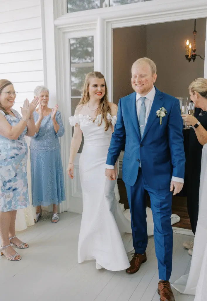 The reception continued the sense of closeness while dialing up the elegance. Catered Occasions crafted a dinner that felt indulgent yet personal, accompanied by desserts from Sweet N Savi that delighted guests with sweetness and artistry. Bar service by Gray & Co. provided a polished experience, while the couple’s personal selections of wine and spirits added another layer of individuality.